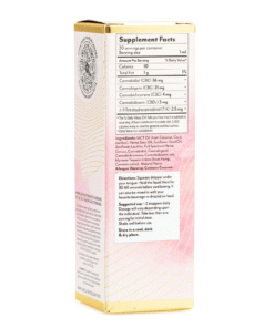MCT Oil (from Coconut, Cocos nucifera), Hemp Seed Oil, Sunflower Seed Oil, Sunflower Lecithin, Cannabidiol, Cannabigerol, Cannabichromene, Tetrahydrocannabivarin, and Limonene Terpene Isolate (from Hemp, Cannabis sativa), Natural Flavor.