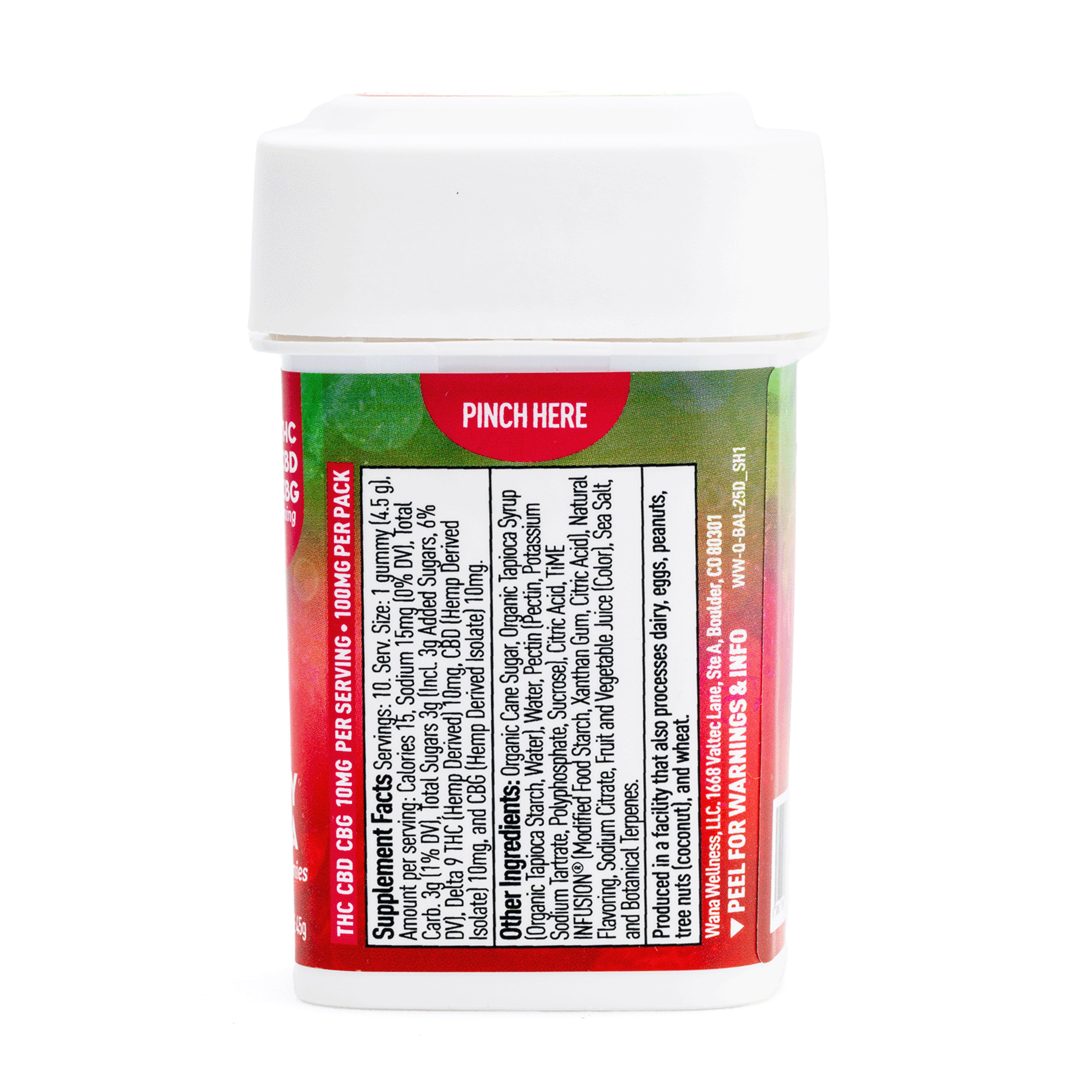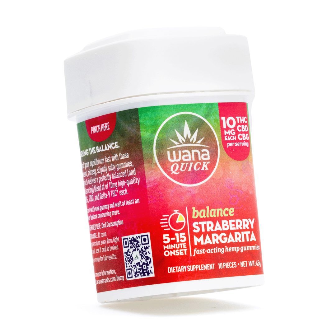 Take the express route to relaxation with Wana Quick Balance Gummies – Strawberry Margarita. Infused with 10 milligrams of Delta 9 THC, 10 milligrams of CBD, and 10 milligrams of CBG per gummy (300 milligrams total cannabinoids per package), these melt-proof, vegan gummies are crafted for rapid onset and a balanced, refreshing euphoria. With a burst of ripe strawberry and a hint of tangy lime, they deliver the classic margarita experience—no salt rim required.